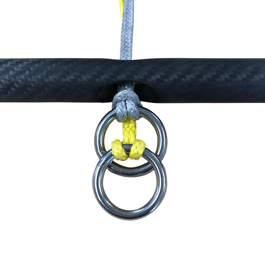 After more than three years of development and testing, we have finalized the KISS Race Control System version of the KISS Kite Bar. The Race bar was developed with a much longer throw, a 4:1 fine tune trim system, a double ring, shackle style connection, and a single front-line flagout.